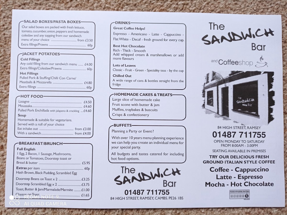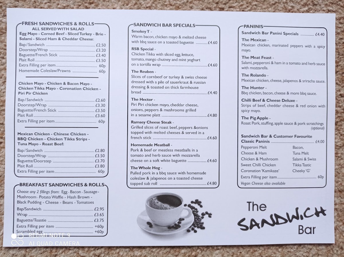 The Sandwich Bar offers a straightforward and inviting menu that suits a casual café setting. You’ll find a selection of classic sandwiches, comforting hot dishes, and a variety of drinks designed for easy, everyday enjoyment. Whether stopping by for a morning pick-me-up or a relaxed lunch, the menu accommodates a range of tastes without fuss.